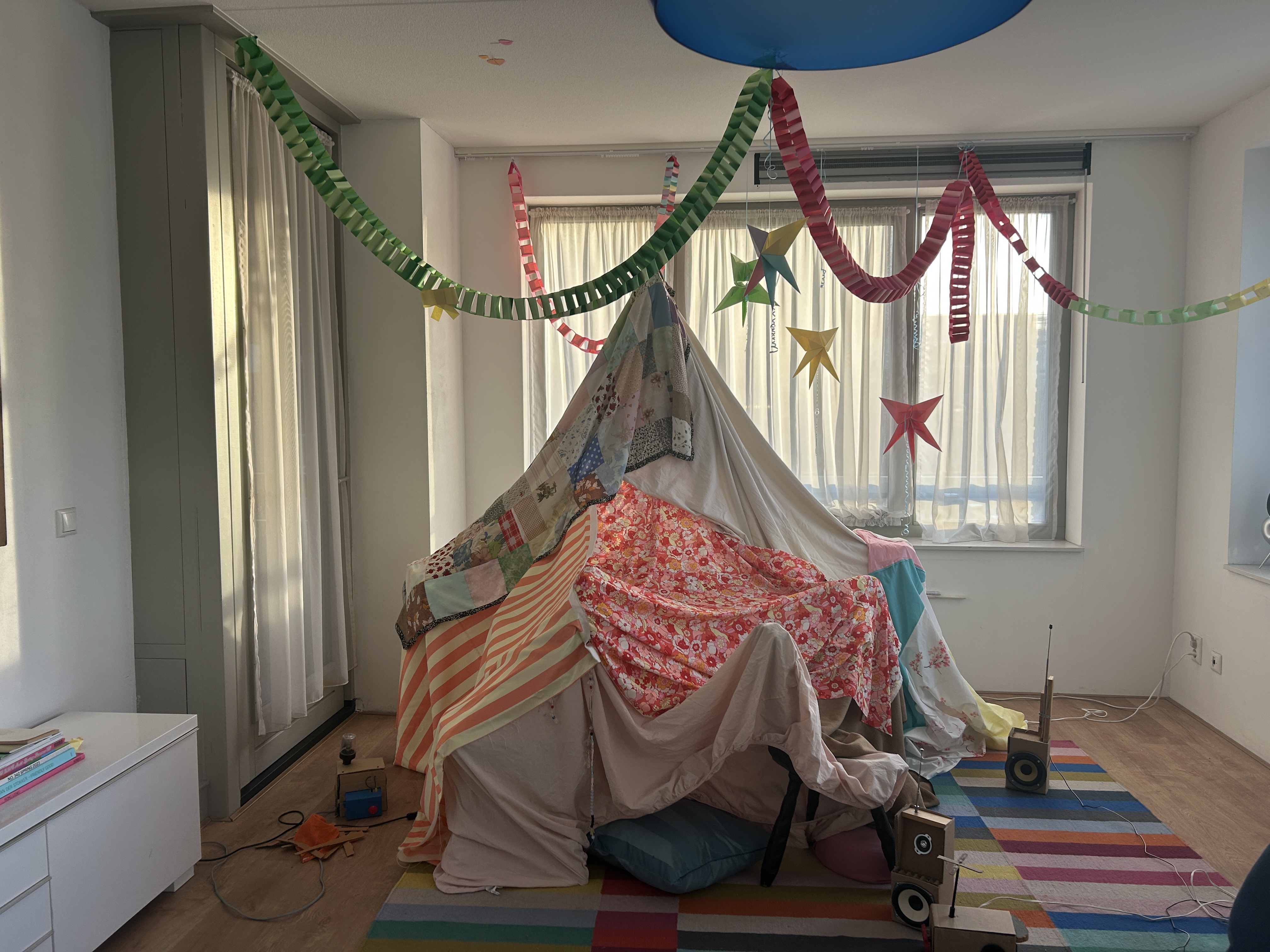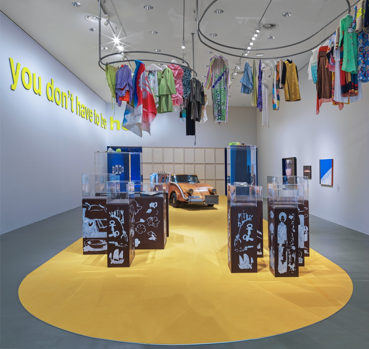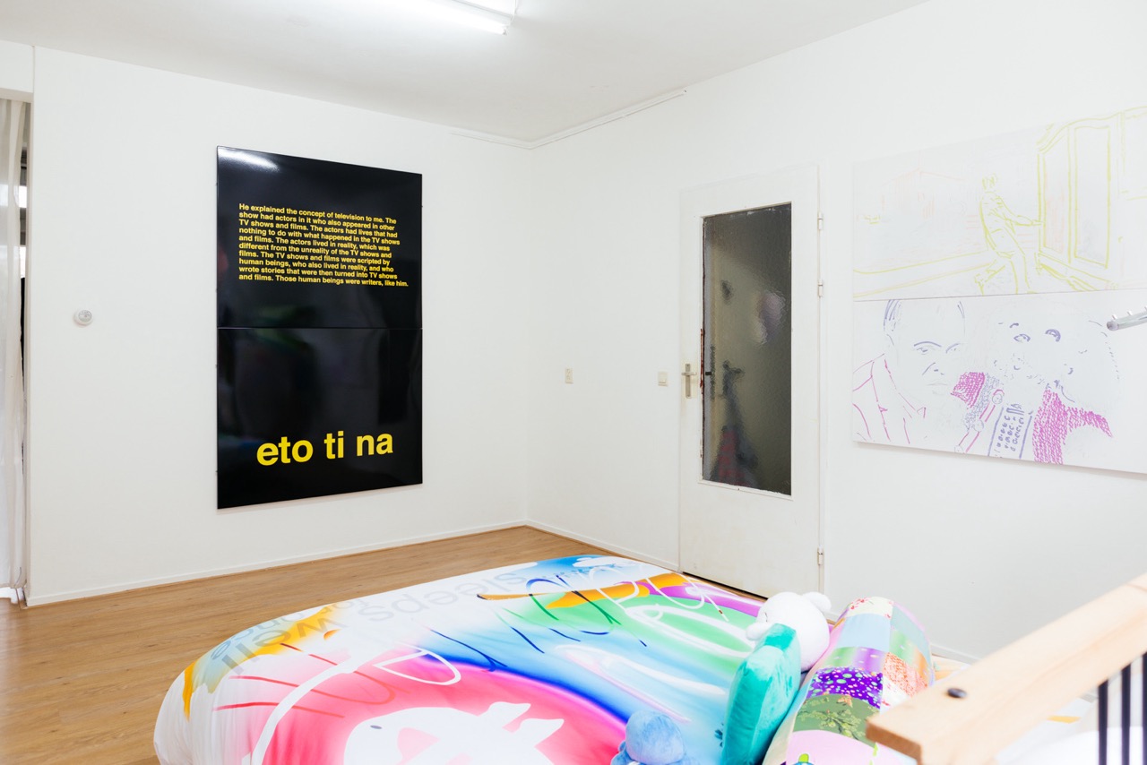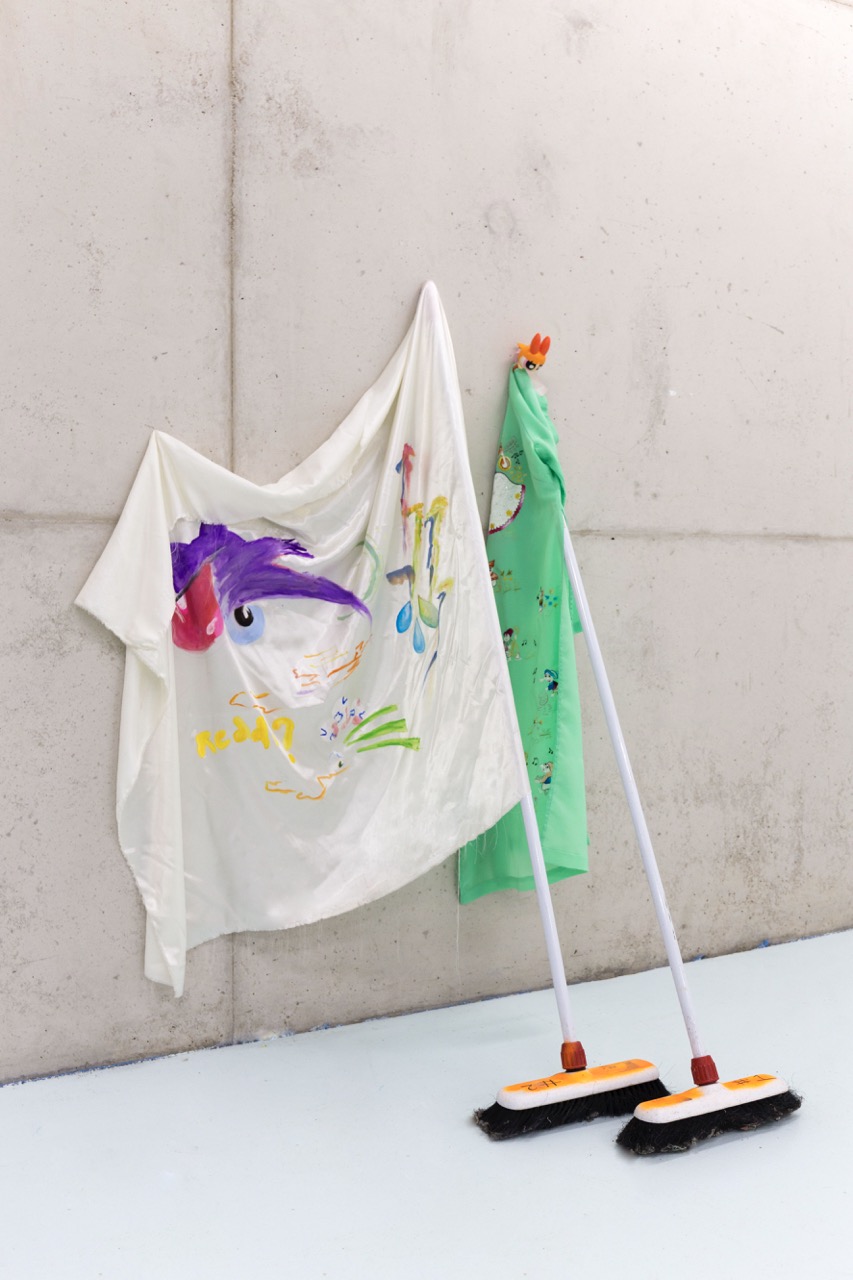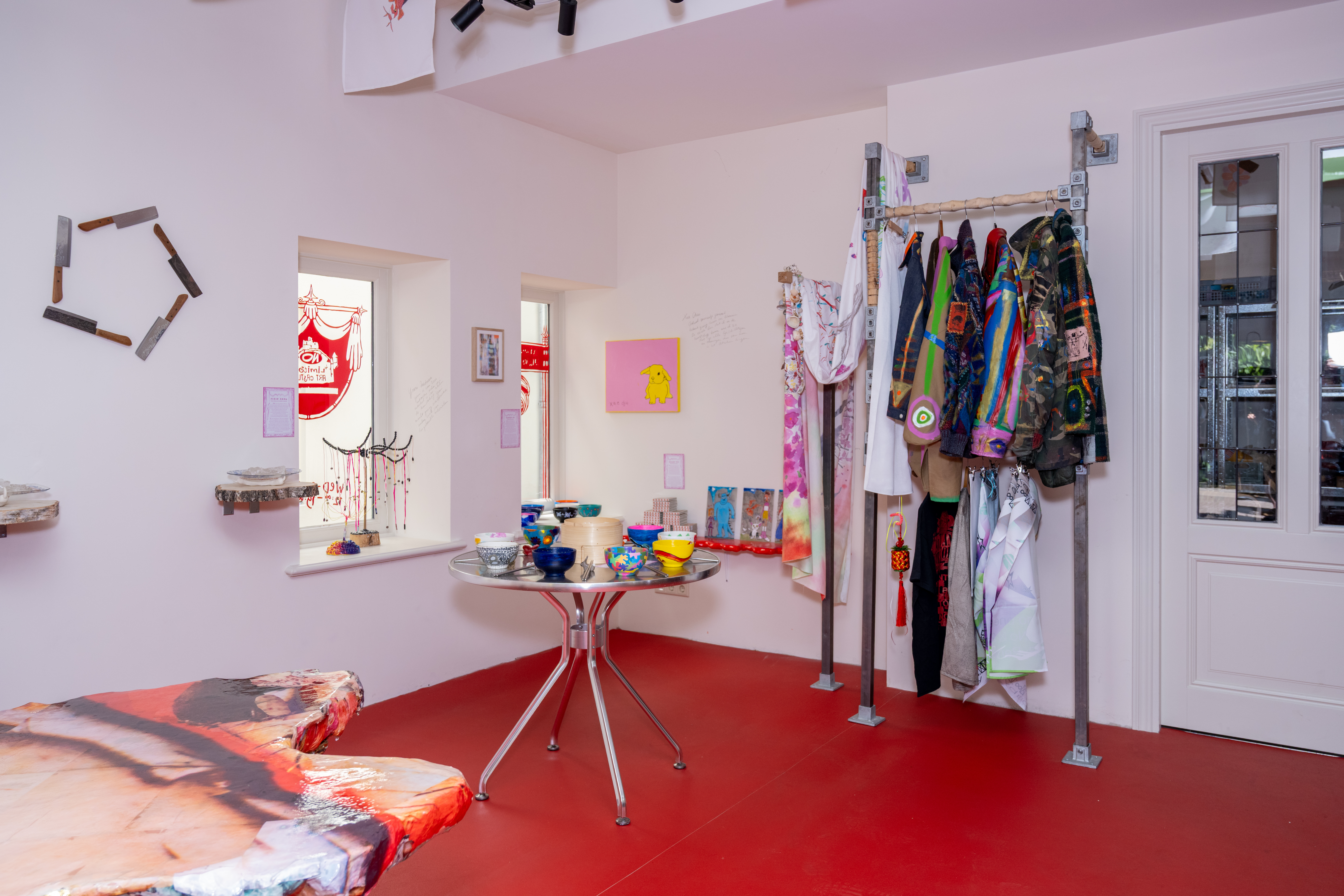 Metal, wood, polyster sheets, archive pieces of Baby Reni and Lily van der Stokker “Good” t-shirt, stuffed animals