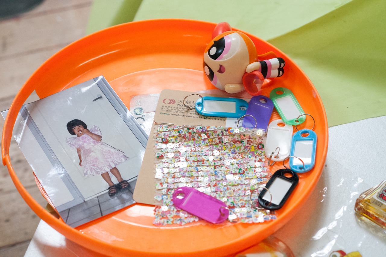 Metal, ribbon, lanyard, lock, keys, fabric, iron wire, beads, charms, paperclips, plastic toy, bubble stick