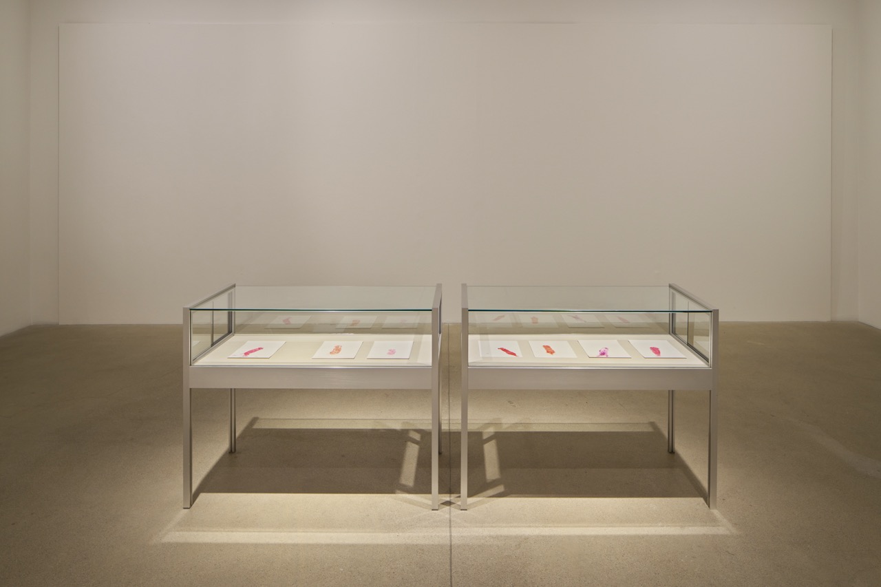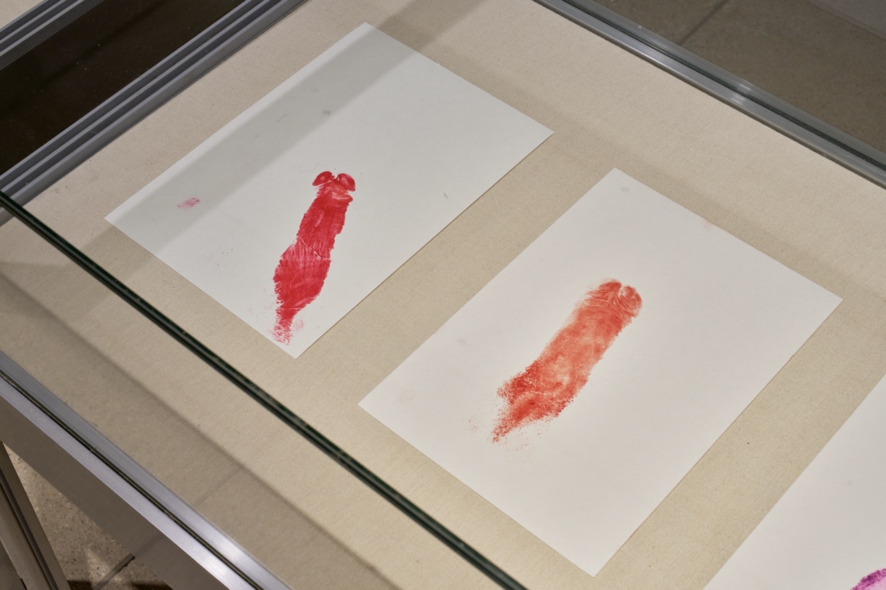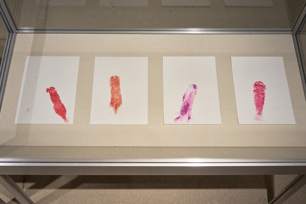 Installation of series of five lipstick dick prints on 250 g/m2 paper
