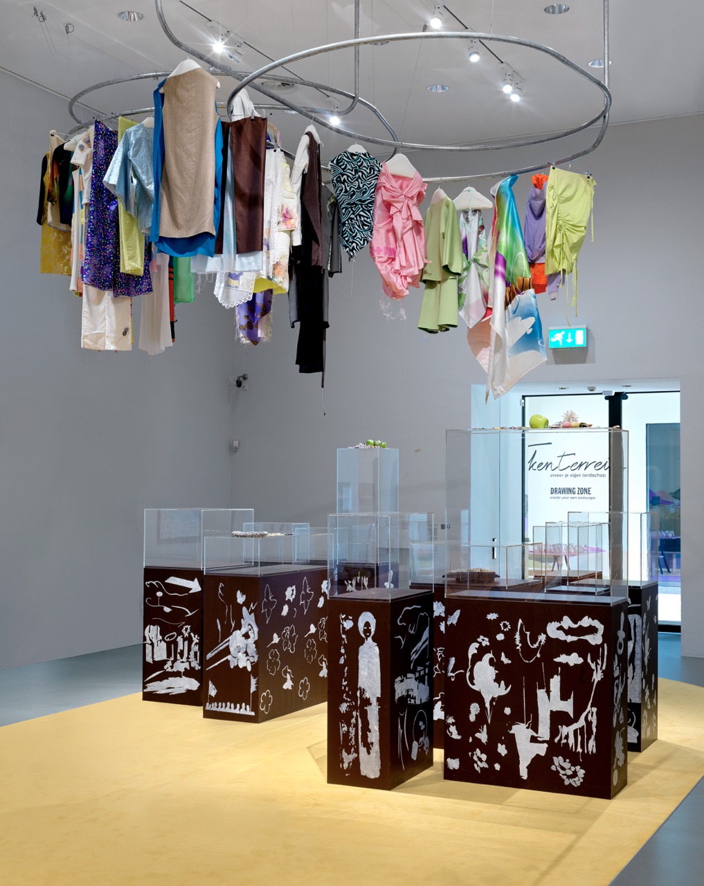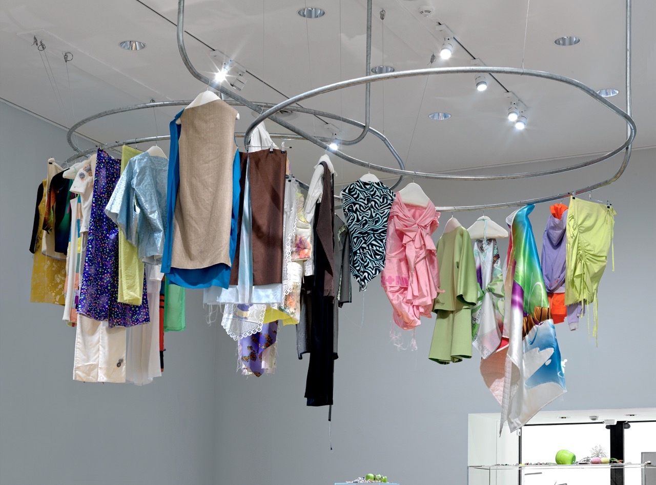 Garments from JETLEGGED (2020), BLISS(2022) and Centraal Museum Depot collection, metal, steel, mdf, acrylic